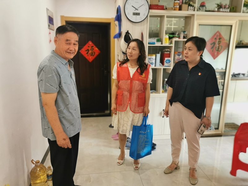 在凱迪塞納河畔小區(qū),志愿者們走進(jìn)困難黨員楊義平家中,詳細(xì)詢問他的身體狀況和家庭收入來源,叮囑他在高溫天氣要注意身體,合理鍛煉、樂觀生活。