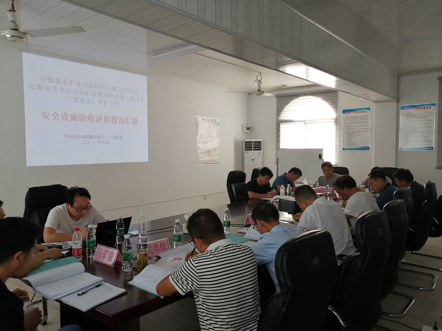 會議前專家組一行前往巢東礦區(qū)首采區(qū)逐一查看安全設施的建設情況,隨后在會議室分別聽取巢東礦業(yè)公司關于項目建設和試運行情況介紹、瑯琊山礦業(yè)工程公司關于項目建設施工情況介紹、華東冶金勘查局八一一地質(zhì)隊關于《安全設施驗收評價報告》的介紹,期間專家組針對現(xiàn)場、驗收評價報告以及其他軟件資料給予充分的認可,同時對存在的問題進行點評,并要求驗收評價單位對報告進一步修改、完善。