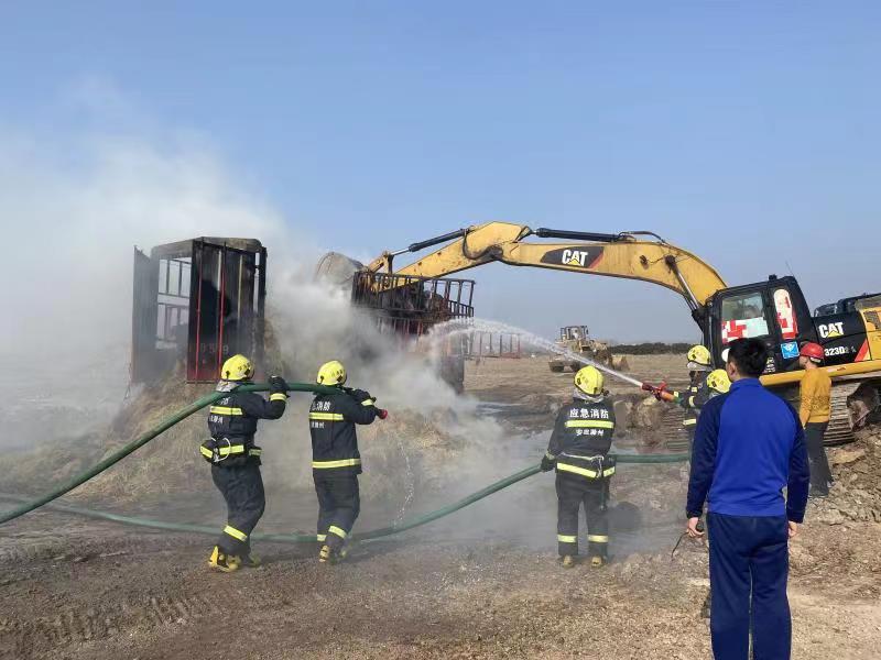 11月16日中午12時許,澗溪鎮(zhèn)姚郭村澗官路路口一輛滿載稻草的貨車不慎刮到路邊高壓電線引發(fā)稻草著火,情急之下,貨車司機將車輛開往巢東礦區(qū)磅房尋求救援。興明礦業(yè)總經(jīng)理王秀超得知火情后,立即啟動火災應急預案,安排磅房工作人員撥打119火警電話,并在短短的3分鐘內(nèi)抽調(diào)了巢東礦區(qū)10余名工作人員、2臺灑水車和1臺挖掘機,第一時間趕往現(xiàn)場救援。興明礦業(yè)職工冒著滾滾濃煙,沖進火場現(xiàn)場,克服煙熏火燎等重重困難,奮力滅火,在消防官兵趕到前,有效阻止了火勢蔓延。隨后在與消防救援專業(yè)人員協(xié)同下,經(jīng)過1個多小時的不懈努力,終于把大火撲滅。