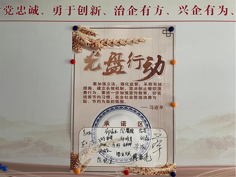 知行合一,積極參與,共做“勤儉節(jié)約”的踐行者。組織全體員工簽寫“光盤行動(dòng)倡議書”,積極營造節(jié)約糧食、珍惜食物的氛圍。