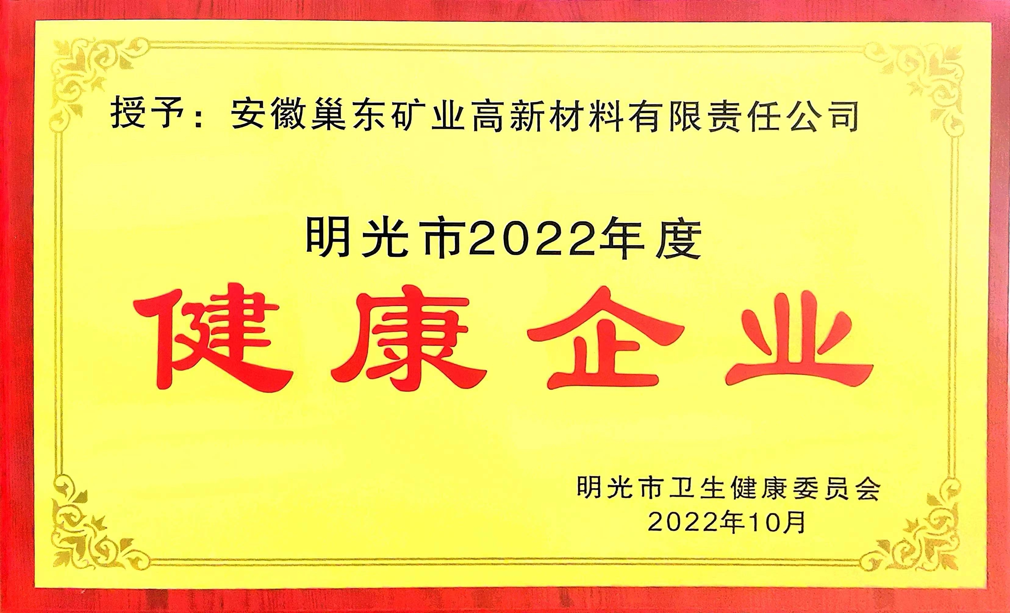 3月17日,2022年明光市健康企業(yè)表彰儀式在明光市舉行,滁州市興明礦業(yè)有限公司下屬全資子公司安徽巢東礦業(yè)高新材料有限責(zé)任公司榮獲“2022年度明光市健康企業(yè)”榮譽(yù)稱號。